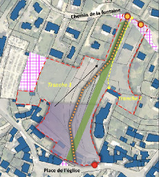 Cette opération concerne la zone centrale qui va de la place de l’église au chemin de La Fontaine. Pour parvenir à leur fins, nos trois urbanistes municipaux ont imaginé de la diviser en deux tranches car la tranche 1 se heurte à des problèmes encore insolubles tandis que la tranche 2 pourrait être réalisée moyennant quelques « arrangements » avec la légalité ! Des subventions seraient obtenues par ailleurs grâce a ce projet dit « social ».