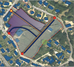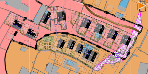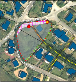 Plus grave encore, le plan du lotissement montre que les constructions empiètent sur la zone rosée qui doit être réservée à l’élargissement de la rue de La Fontaine conformément au PLU !